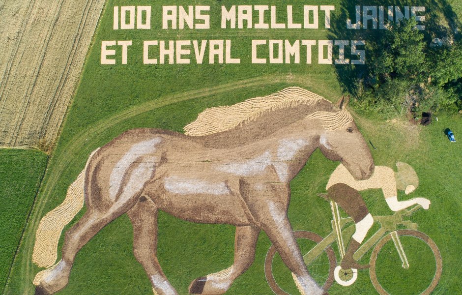 « Comme la race comtoise est la première race de chevaux de trait en France, en termes d’effectif, elle est maillot jaune des chevaux de trait » s’amuse l’association du cheval comtois, commanditaire.