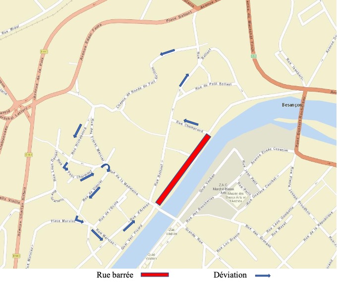 dans sa partie comprise entre la rue Champrond et le pont Battant. Ces travaux se dérouleront jusqu’au 30 novembre en journée (de 7h30 à 17h00) et impacteront la circulation.