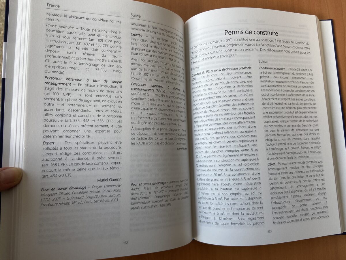 C’est à ce moment que la Neuchâteloise a l’idée de créer ce dictionnaire. L’idée étant "d’essayer de se comprendre un peu mieux" car le droit français et suisse est souvent à même de se rencontrer. "Il peut y avoir des Français intéressés par le droit suisse ou encore des problèmes de succession, ou même une infraction commise par un Français en Suisse" explique madame Laperou-Scheneider. "La frontière n’est pas hermétique même si les ordres juridiques sont différents" résume Valérie Défago.