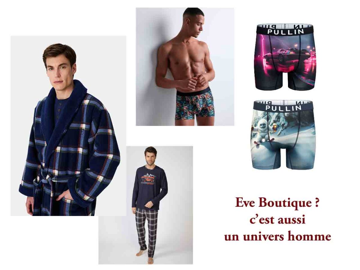 Et puis, Eve Boutique, c’est aussi des pyjamas douillets ou des peignoirs tout chauds à offrir à l'occasion des fêtes.