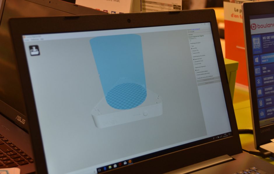 Une fois l'objet dessiné, il suffit de l'enregistrer et d'entrer les ".STL" de la figurine dans le logiciel de l'imprimante pour enfin lancer l'impression.