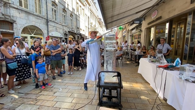 Vidéo – Le spectacle glacé de Gérard Taurin devant la Maison Baud à Besançon